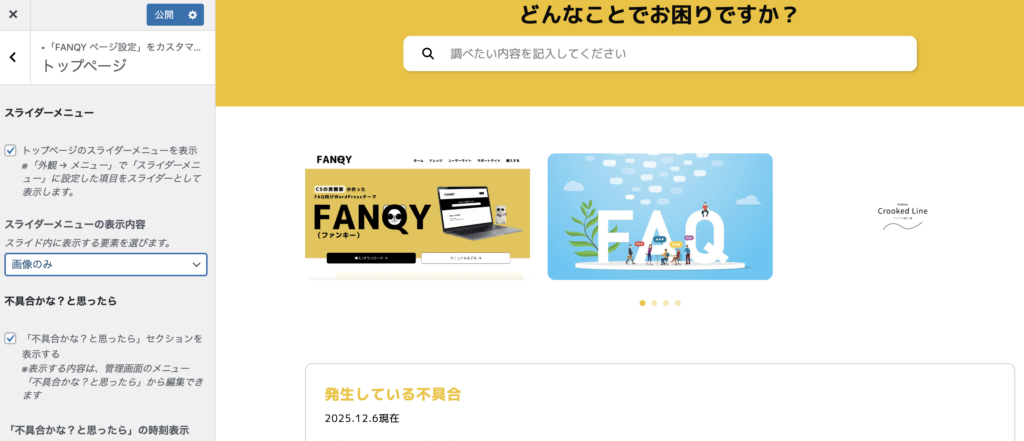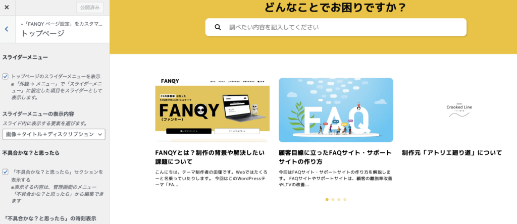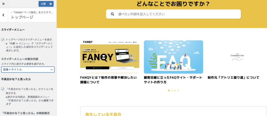 FANQYでは、トップページにスライダーメニューを設置する機能を用意しています。