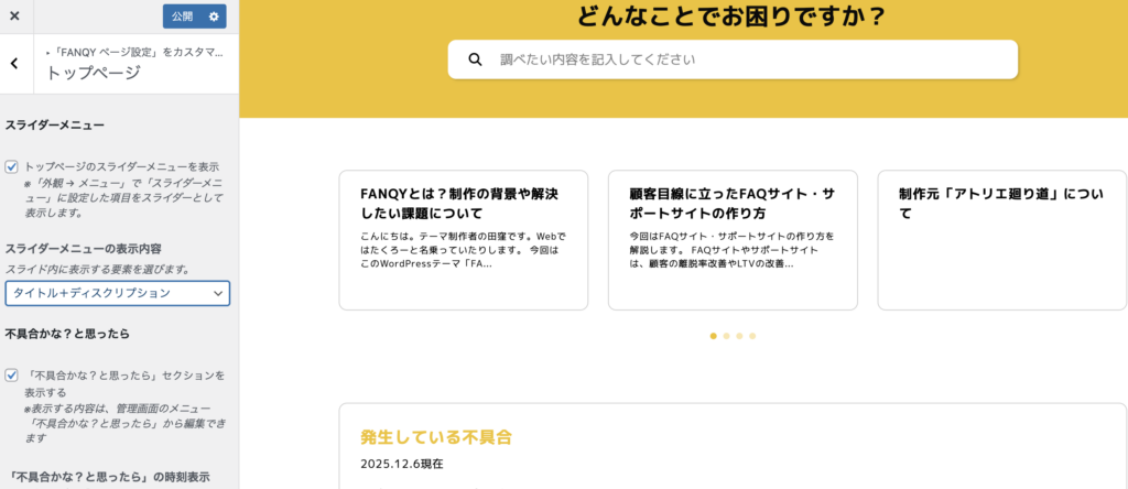 スライダーメニューのデザイン・表示設定