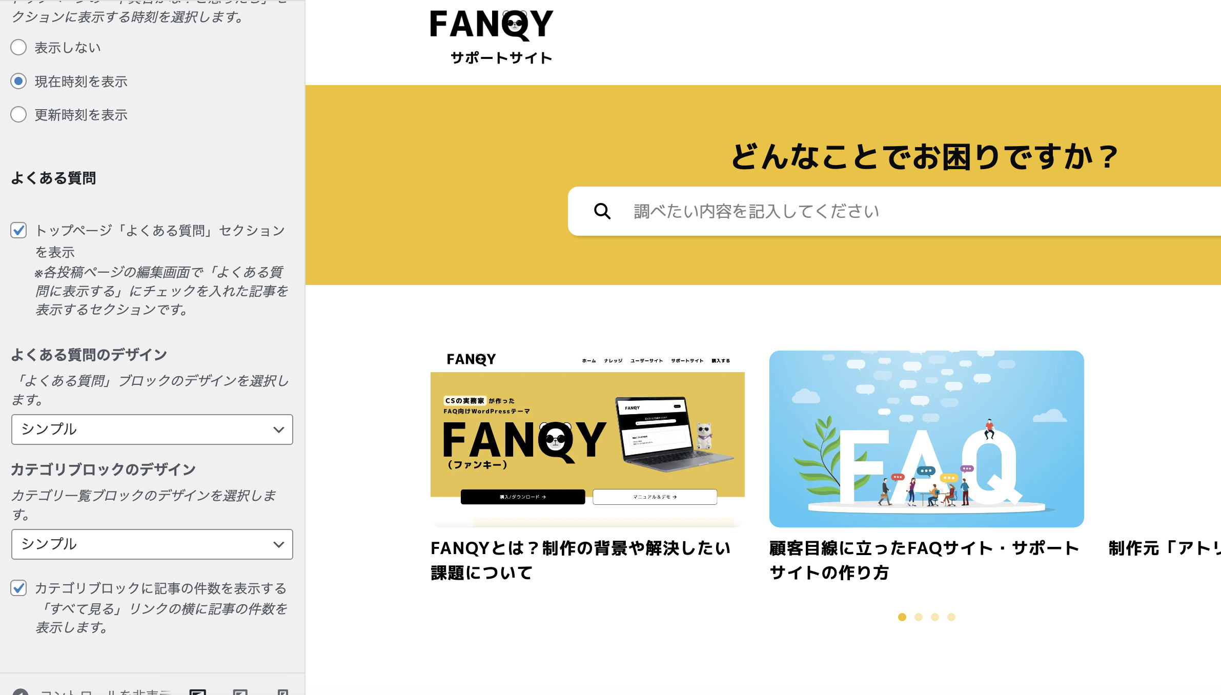 同じくカスタマイザーにて、FAQ内の記事を以下の並び順に変更できるようにしています。