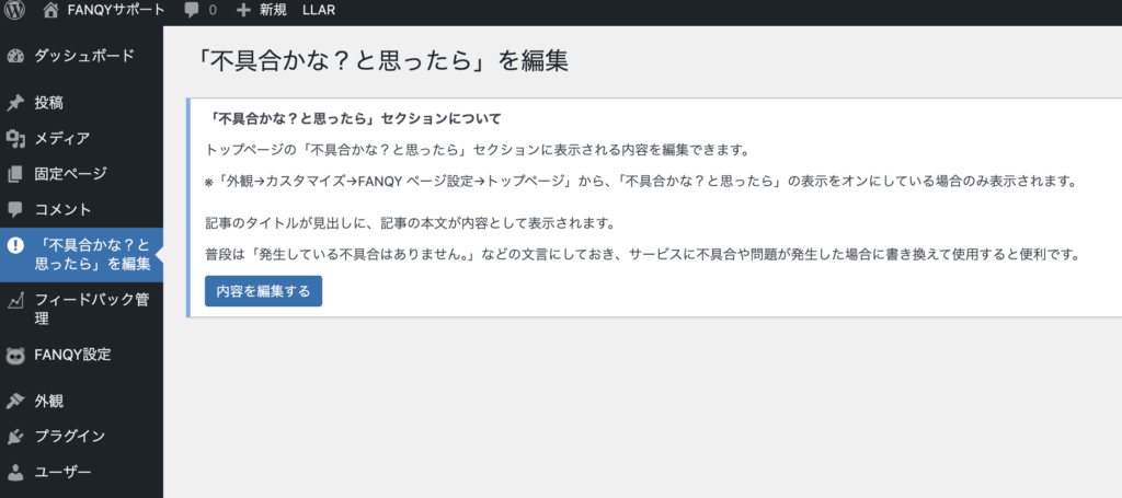 管理画面に「不具合かな?と思ったら」を編集するメニューをご用意しています。ここから内容を編集してください。
